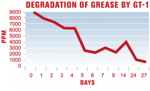 How fast does it work? This graph shows the typical course of the amount of grease in the grease pit and thus the odour production available. Clearly shown in the before and after pictures. That is a fast result!