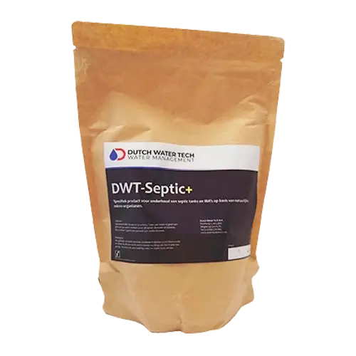 For septic tanks that are heavily used or that already give a lot of odour nuisance, there is DWT-Septic+. This product contains an enormous amount of micro-organisms, approximately 100,000 per gram. In combination with the unique production method, DWT-Septic+ is a very effective product for the maintenance and support of your septic tank or WTP.