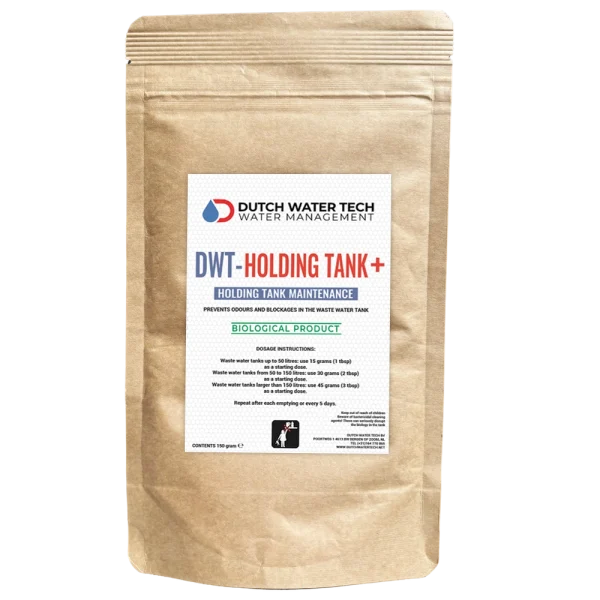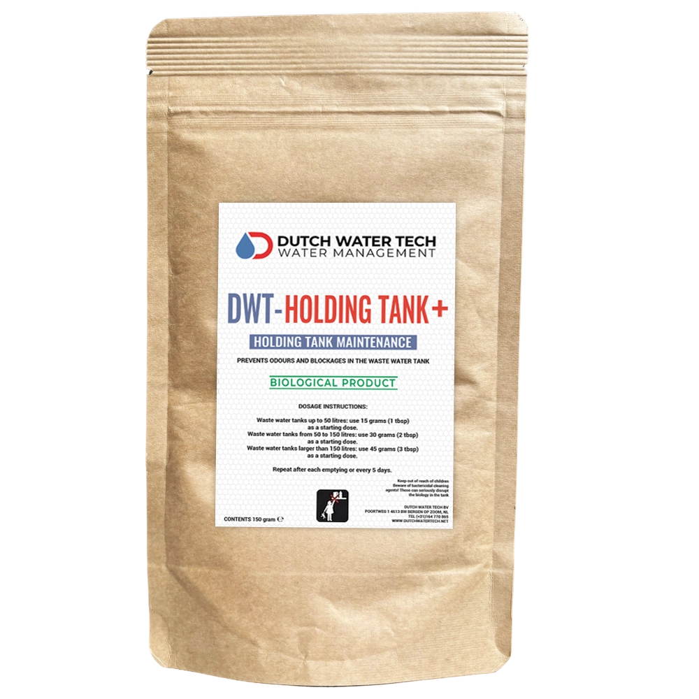 DWT Holding Tank + is a highly effective, organic product in completely plastic-free packaging. It contains non-pathogenic bacteria and microorganisms that break down organic matter in the holding tank—without releasing unpleasant odors. This helps prevent foul-smelling wastewater.